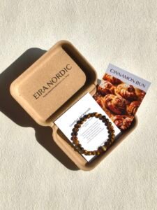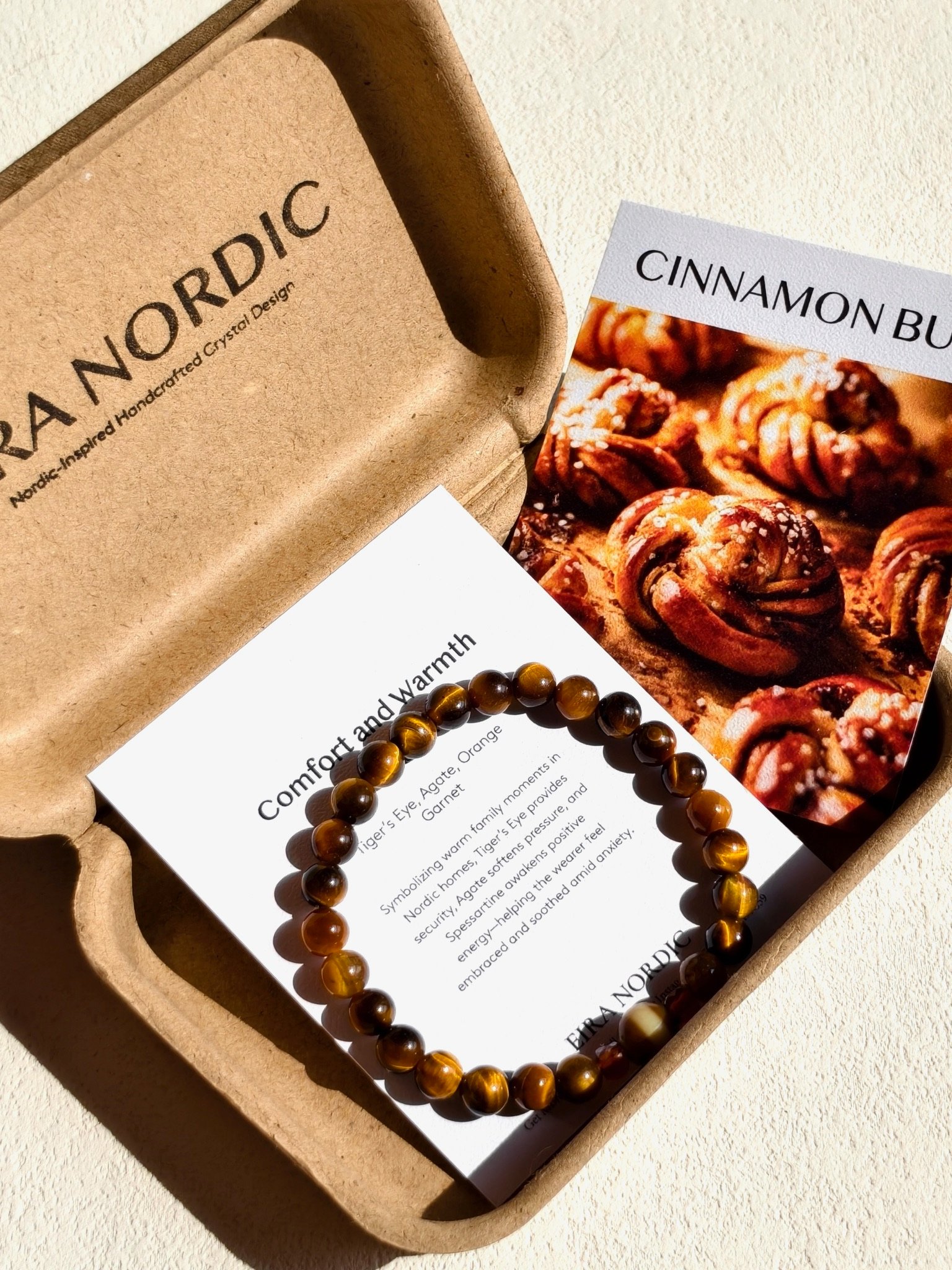 Inspirerat av de mysiga stunderna i nordiska hem, speglar detta armband känslan av att vara omfamnad av värme — doften av nybakade kanelbullar, lågmälda samtal och de gemensamma pauserna som ger vardagen lugn. Det är en symbol för hemmet, omsorg och en varsam trygghet under stunder av oro.